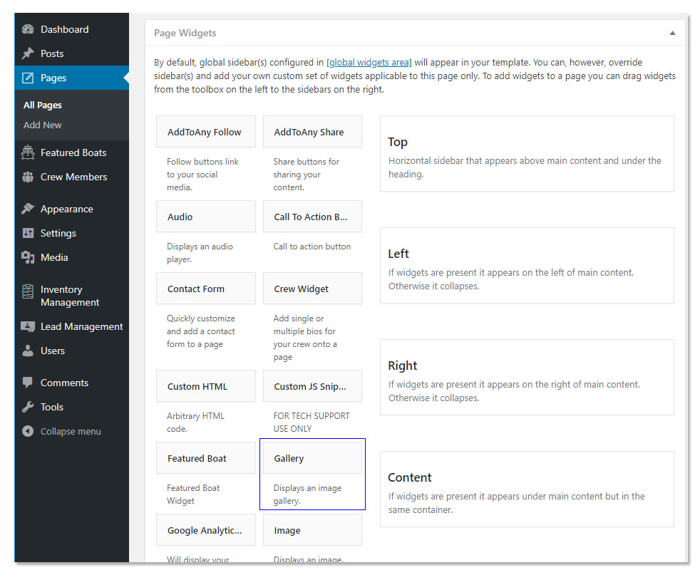 Step 2. Scroll to the Page Widgets area and find the Gallery widget.