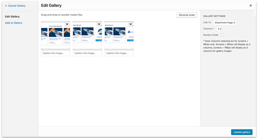 TIP: In Gallery Settings you can choose to link your gallery to an attachment page, media file or none.