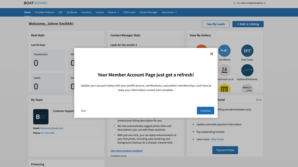 If you choose to skip the form, don’t worry—you’ll be prompted again the next time you log into BoatWizard.